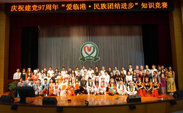 为庆祝建党97周年,也为了积极创建上海市民族团结进步镇,临港管委会、南汇新城镇结合浦东新区民族宗教法制宣传月活动,在临港地区广泛组织各族群众,学习宣传和贯彻党的民族政策、维护少数民族合法权益,采取多种形式,深入开展民族团结进步创建活动。2018年6月25日,由临港管委会、南汇新城镇主办,少数民族联合会南汇新城镇分会、我校具体承办的“爱临港·民族团结进步”知识竞赛在我校举办。有来自上海海事大学、上海海洋大学、上海建桥学院、上海临港经济发展(集团)有限公司、上海第六人民医院东院、镇属申港社区党委、芦潮港社区党委及我校共8支代表队参与了竞赛角逐。