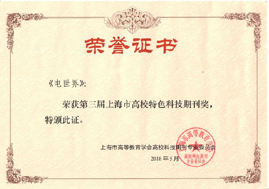 2018年3月到5月上海市高校科技期刊专委会开展了第三届上海市高校精品·优秀·特色科技期刊奖评选活动,并在江苏省镇江市“沪苏高校科技期刊学术交流会暨上海市高校科技期刊专委会2018年学术年会”颁发了第三届上海市高校精品·优秀·特色科技期刊奖。来自上海市和江苏省高校科技期刊的108名编辑同仁参加了此次会议。《上海电机学院学报》(下称《学报》)荣获 “第三届上海市高校优秀科技期刊奖”,《电世界》荣获“第三届上海市高校特色科技期刊奖”。