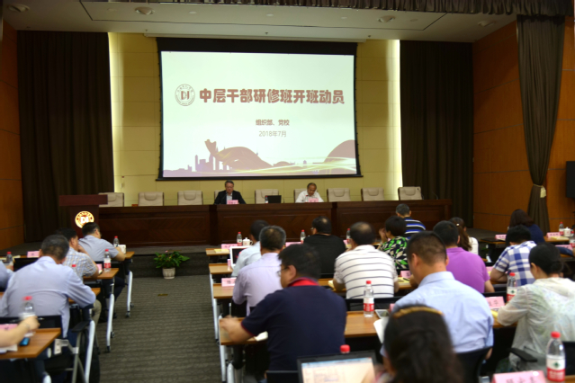 7月12日下午,由组织部、校党校主办的2018年中层干部研修班在行政楼330会议室举行。全体校领导及100余名中层干部、部分骨干班课题组成员参加。