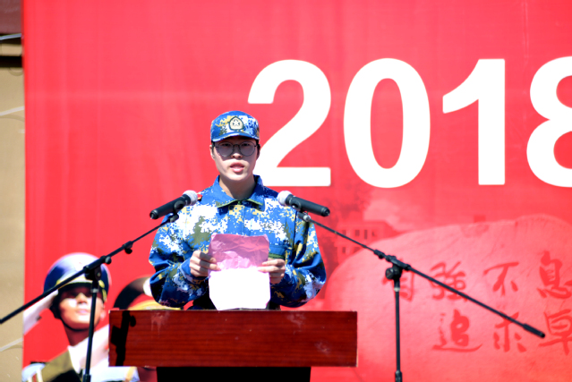 自机械学院的陈豪和来自高职学院的顾伟康作为新生代表发言,他们表示在本次军事训练中一定会刻苦训练,勇往直前,自制、自立、自爱、自信、自强,认真完成此次军事训练。