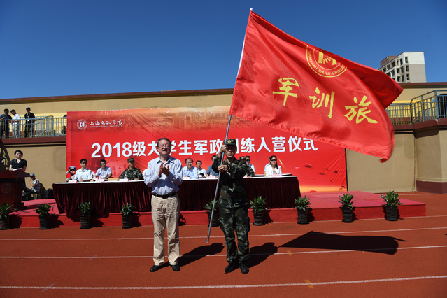 仪式上,学校党委书记孙培雷为军训旅授旗,校长胡晟致辞。