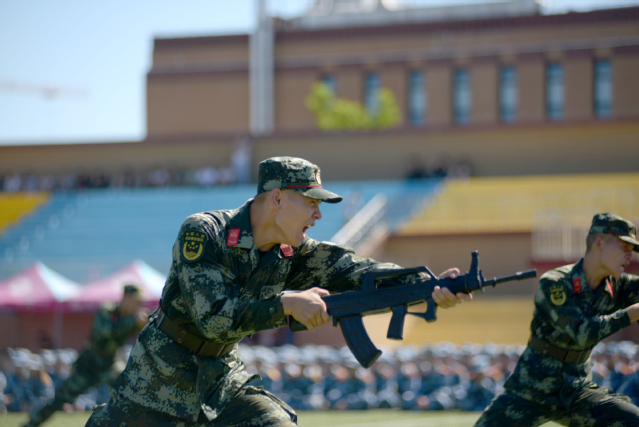 入营仪式上,承训部队进行了队列表演、刺杀表演、擒敌表演及硬气功表演,整齐划一的动作和气势恢宏的表演赢得了阵阵掌声!承训部队首长做了动员讲话,为新生明确了军训的方向,增强了信心,鼓舞了士气。
