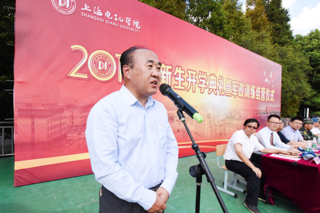 9月9日上午,上海电机学院2018级新生开学典礼暨军政训练结营仪式在临港校区、闵行校区同时举行。校领导孙培雷、胡晟、陈信、杨若凡、李晓军、陈东辉、王志恒、杨俊杰、张川,武警上海总队机动一支队支队长于怀同、副政委颜靖,各二级学院和相关职能部门负责人、新生家长代表、2018级全体本专科及研究生新生出席了仪式,党委副书记、副校长李晓军,副校长杨俊杰分别在临港校区和闵行校区主持了仪式。