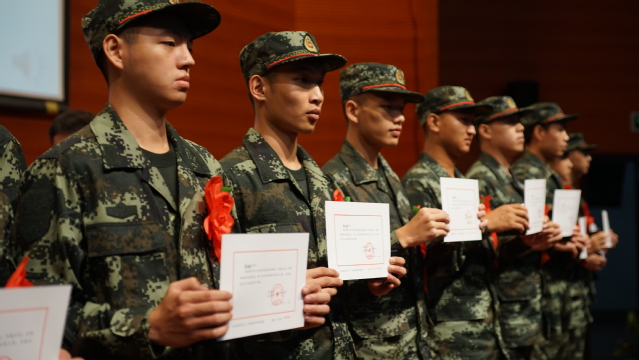 欢送会上,党委武装部副部长李洁向大家通报了学校2018年征兵工作有关情况并宣读了出兵命令。来自商学院的邢梦松同学作为新兵代表发言,感谢学校对他们的培养,表示在今后的部队生活中将积极发扬“自强不息、追求卓越”的学校精神,以优异的成绩回报母校和祖国。