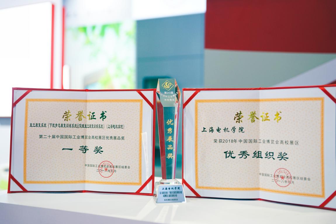 我校“直立康复系统(下肢步态康复训练系统&促醒直立康复训练系统)”项目展出期间备受多方关注,最终荣获第二十届工博会高校展区优秀展品奖一等奖殊荣。同时,组委会授予学校高校展区优秀组织奖及先进个人奖。