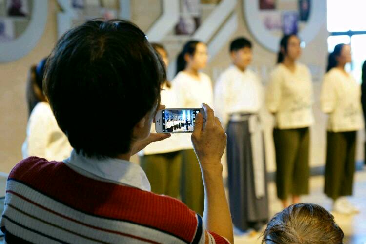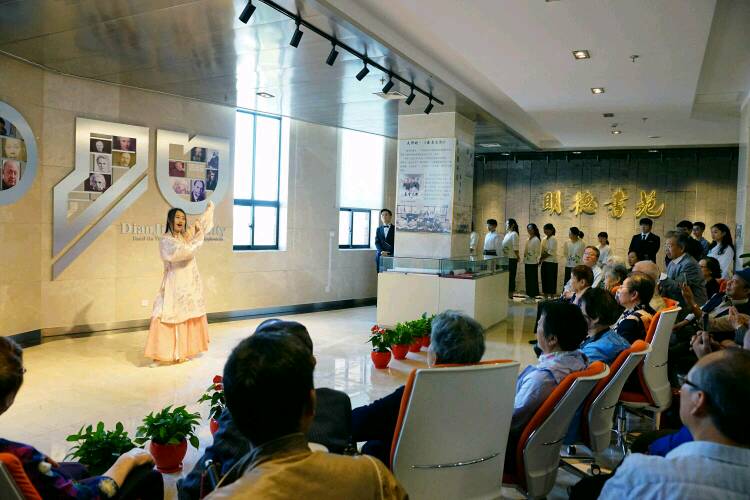 落成仪式上,明德书苑的学生们在图书馆三楼大厅的自由小舞台上为师生和校友们奉献了一台简短精彩的才艺展演。