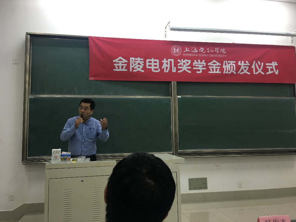 顾伟民向获奖学生表示祝贺,并介绍了上海金陵电机股份有限公司的发展历程。他表示,电机专业的人才较少,而企业的需求又很大,在CO-OP项目中表现优秀的实习生毕业后有机会留在公司工作,他希望同学们珍惜机会、勇于挑战,将自己的人生抱负与学校、社会、国家的发展和需要紧密结合起来,在实践中锻炼成才。