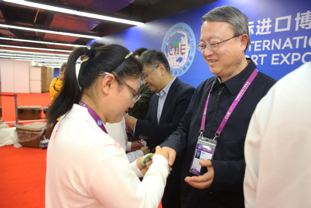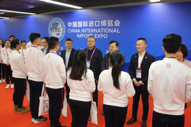 胡晟逐一慰问了内宾服务和餐饮服务等岗位的志愿者,他详细询问了志愿者的工作和学习情况,特别是存在的困难,他指出,进博会是一次学习先进技术、开拓眼界的好机会,希望志愿者同学们在返回校园后,能把进博会期间看到的、学到的、感受到的融入生活;他勉励志愿者,将工作与休息协调好,在认真的完成服务的同时要保重身体,回到学校后尽快调整状态,保证学习成绩不退步。