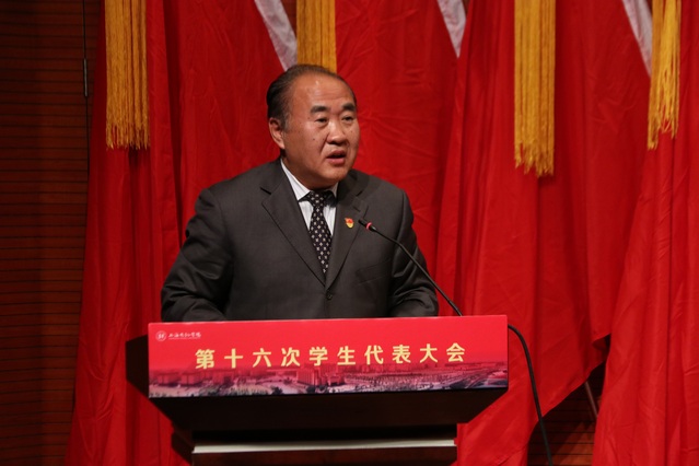 在庄严的国歌声中,上海电机学院第十六次学生代表大会正式开幕。我校党委副书记、校长胡晟发表讲话,他对新一届的学生会干部提出三点要求:一要加强学习,提高工作水平;二要服务同学,做同学的贴心人;三要以身作则,做优秀的社会主义建设人和接班人。胡晟指出,学生干部要提高思想政治素质,要不断学习习近平总书记系列精神、各级党组织和大会下发的文件精神,在思想上保持先进性。同时关心学校的发展,研读学校出台的一系列文件和中长期发展规划。对学生会提出“坚持党的领导,做好桥梁纽带;加强制度建设,正确的行使权力、履行义务;主动担当作为,在自我管理、自我教育等方面做创新工作,紧跟时代步伐,做出新一届学生会的特色”的殷切期盼。最后对广大电机青年学子提出了几点希望:第一要具有奉献精神,打响“上海服务”的名牌;第二,新时代青年要德智体美劳全面发展,不断追求卓越,为中华民族的伟大复兴不懈奋斗。
