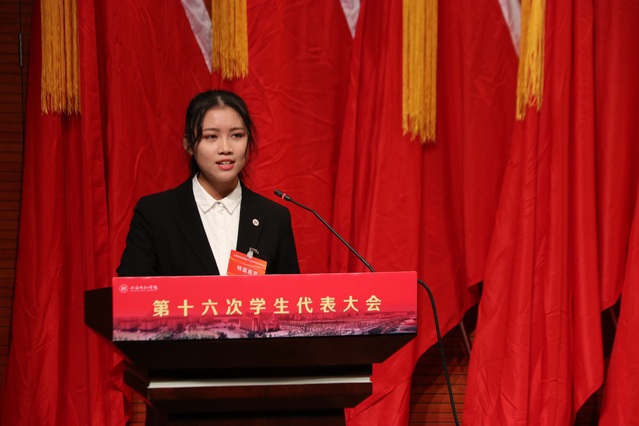 第十五届学生会主席徐志琳代表第十五届学生会作了题为“奋进新时代 谱写新华章,为建设卓越电机贡献青春力量”的工作报告。报告分为“青春印记:勇于探索不忘初心”“青春未来:再砺新篇 谱写华章”两个篇章,系统全面地回顾总结了第十五届学生会四年以来的工作,并从新时代对大学生提出新的要求出发,对学生组织未来的发展做出了新的规划。