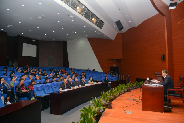 11月28日下午,我校于图书馆报告厅召开党委中心组(扩大)学习会,邀请市教委总督学平辉来校作学习贯彻落实全国教育大会精神宣讲报告,学校党委理论学习中心组、全体中层干部、学科带头人、专业负责人、辅导员、教工党支部书记参加学习会。校党委书记孙培雷主持报告会。