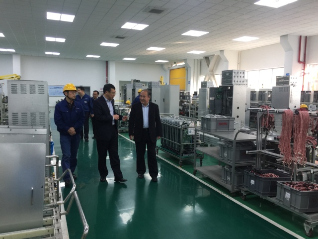 胡晟在公司万忠培、韩慧明等人带领下,参观了公司的产品展示馆、钣金车间、金工车间、电控车间、曳引机车间和中心实验室,万忠培亲自全程进行了讲解。同时双方还进行了座谈交流,就如何深入开展毕业生就业、科研项目合作、教师工厂实践以及人才培养等方面进行了详细交流。