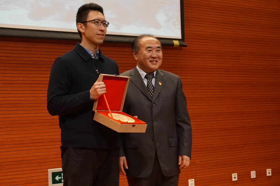 经过激烈角逐,来自电子信息学院的夏雨烟同学获得本次比赛的金奖,材料学院的肖选同学获得最具人气奖。胡晟校长代表学校向新航星集团赠送本次比赛的纪念礼品。