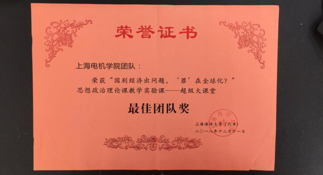 12月11日,第八期“超级大课堂”在上海海洋大学举行,来自上海海洋大学、上海电机学院、上海建桥学院三个团队的师生参加了此次决赛。我校教师团队由马克思主义学院副院长宋洁老师带队,方恩升、赵冰、黄伟、陆建松五位博士组成。经过“课堂好声音”视频展播和“问题面对面”师生问答两个环节的激烈角逐,我校师生表现优异,方恩升老师和赵冰老师分别就“我国应该如何面对贸易战”“如何看待区域经济一体化和经济全球化的关系”等问题出色地回答了学生的提问,宋洁老师做出了更完整的补充回答。最终,经过激烈角逐,马克思主义学院教师团队荣获最佳团队奖(第一名),这是我校参加此项活动以来的一个重大突破,也是首次获得最佳团队奖。(陆建松)