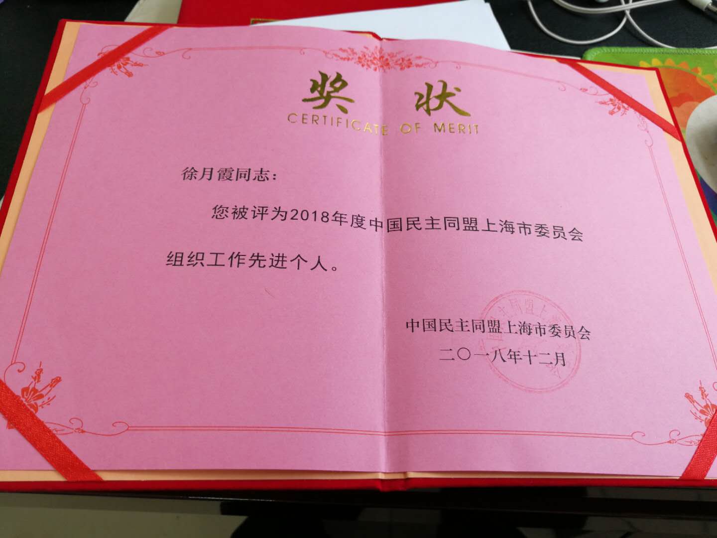 在2018年度民盟上海市委举行的年会上,图书馆副研究馆员徐月霞老师获2018年度先进个人光荣称号。徐老师从事教育工作30多年,调来我校图书馆工作也有十多年。到图书馆工作以来,一贯认真负责,受到师生好评。作为学校民盟支部的副主委兼组织委员,徐老师还担任图书馆直属党支部党风监督员。徐老师在学校民盟的组织活动中,身体力行,践行初心,在为师生服务的过程中,不断提升自己的理论水平和业务能力,积极参加相关专业培训,为读书月作的学术报告《面向大海的城市——从自由贸易区到洋山深水港》,受到广泛欢迎。(周航)