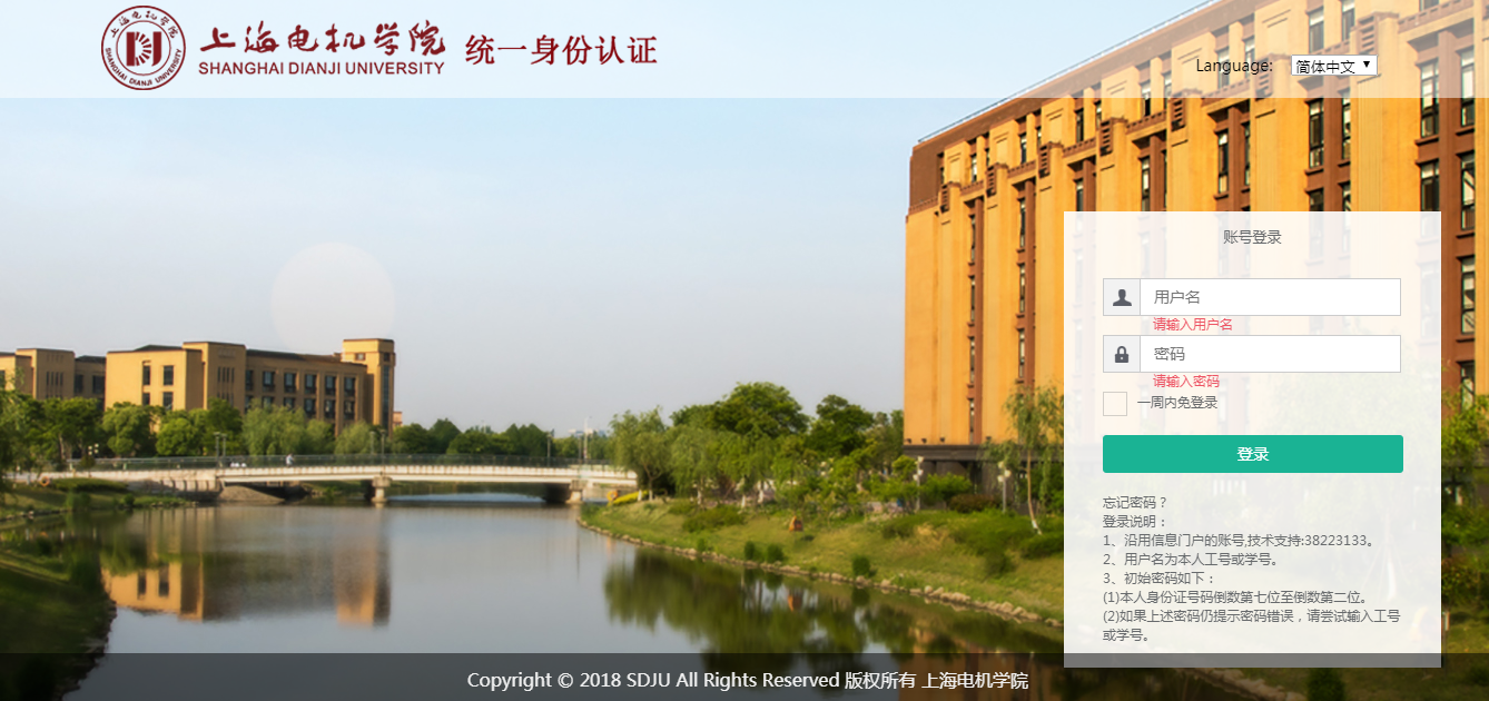 图2 统一身份认证(信息门户)登录界面
