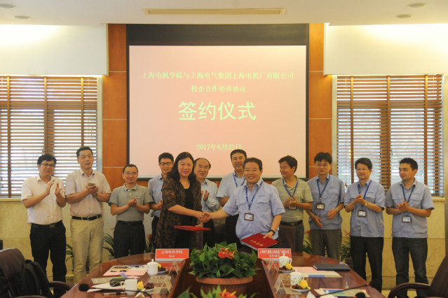 2017年6月23日上午,校长胡晟教授、副校长杨若凡教授带领校办、教务处、学生处和电气学院一行前往上海电气集团上海电机厂有限公司签订人才培养合作协议,并参观了企业的生产车间。