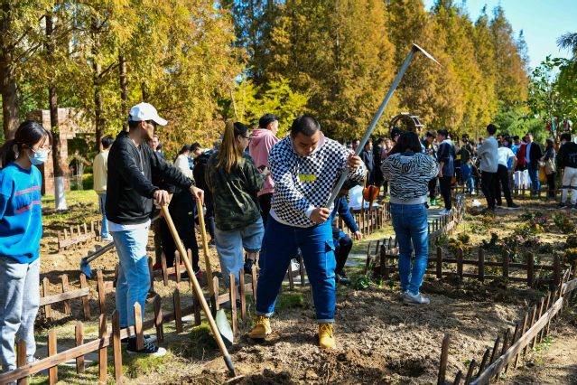 随后,师生一起挥动铁铲,种下了寓意着硕果累累的柚子树,投入到了秋收和秋播的劳动中去。