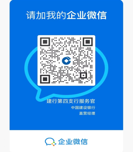 请通过扫码添加建行企业微信,并在微信中回复:上海电机学院+本人姓名+手机号,用于确认办理情况,在申领过程中遇到问题或是有后续金融服务问题,也可在微信中提问解答(人工服务)。