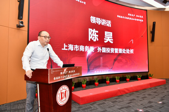 市商务委外国投资管理处处长陈昊指出,服务业是上海市国民经济的支柱产业,年度GDP占比已经超过70%,这是上海下一步持续推进改革创新和开放发展的重点领域,也是上海市增强全球资源配置能力、提高区域服务功能的重要依托。他强调上海会持续推进现代服务业扩大开放,高校是产业制定、规划制定、决策制定非常重要的智库,应该在产学研融合发展当中发挥更大作用。他认为临港新片区自2019年揭牌成立以来,持续优化外商投资环境、增强外商信心、吸引外国投资,新片区现代服务业实现了高质量发展,为上海、长三角区域、全国的经济社会发展、深化改革和扩大开放、推动高质量发展和创造高品质生活服务做出了重要贡献。希望各高校聚焦现代服务业发展需求,为新片区产业经济高质量发展提供智力和人才支撑。