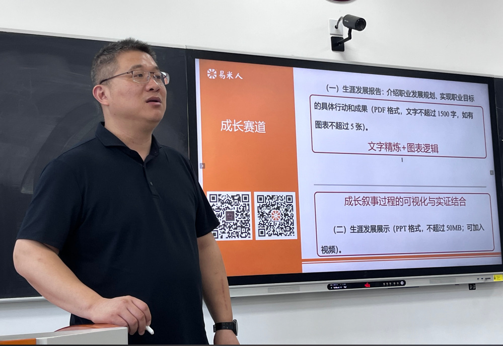训练营为期三天,内容丰富、形式多样。易米实验室的钱静峰和白茹两位资深老师围绕首届全国生涯规划大赛成长赛道,精心设计了多个模块的课程。培训第一天,老师们通过体验式活动组建团队,激发了对职规辅导课程的期待。随后,通过对赛事背景的回顾和比赛细则的解读,老师们对首届全国生涯规划大赛有了更深入的了解。在生涯闯关体验环节,老师们基于AIGC应用进行了模拟体验,并在复盘环节中深入探讨了学生生涯规划中的信息支持与行动支撑。在培训的后半段,老师们学习了生涯发展报告的编制技巧,并通过案例分析,掌握了报告框架结构与编制重点。