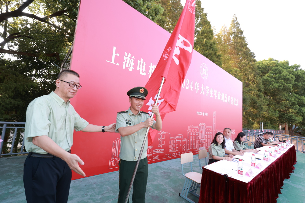 校党委副书记朱洪春,校党政办副主任、闵行校区管委会副主任林文胜分别向军训旅授旗,并发表讲话。首先代表学校向全体参训的2024级新同学们表示欢迎,并向承训部队表示崇高敬意和衷心感谢,强调大学生军训是全民国防教育的重要组成部分,也是学校开展国防教育、培养高素质人才的重要形式。希望全体同学通过军训使自己的思想觉悟和行为方式登上新的高度,并向军训学员提出三点要求:一是要强化纪律,磨练意志;二是互帮互助,团结协作;三是迅速适应,勇于突破,在挑战与磨砺中变得更加勇敢坚强,遇见最好的自己。