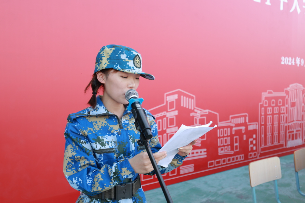 仪式上,来自电气学院电气2413班的陈乐洋、设计与艺术学院2024级产品设计专业翟汪佳同学分别作为两校区军训学员代表发言,他们表示全体新生将刻苦训练,勇往直前,自制、自立、自爱、自信、自强,认真完成此次军事训练。