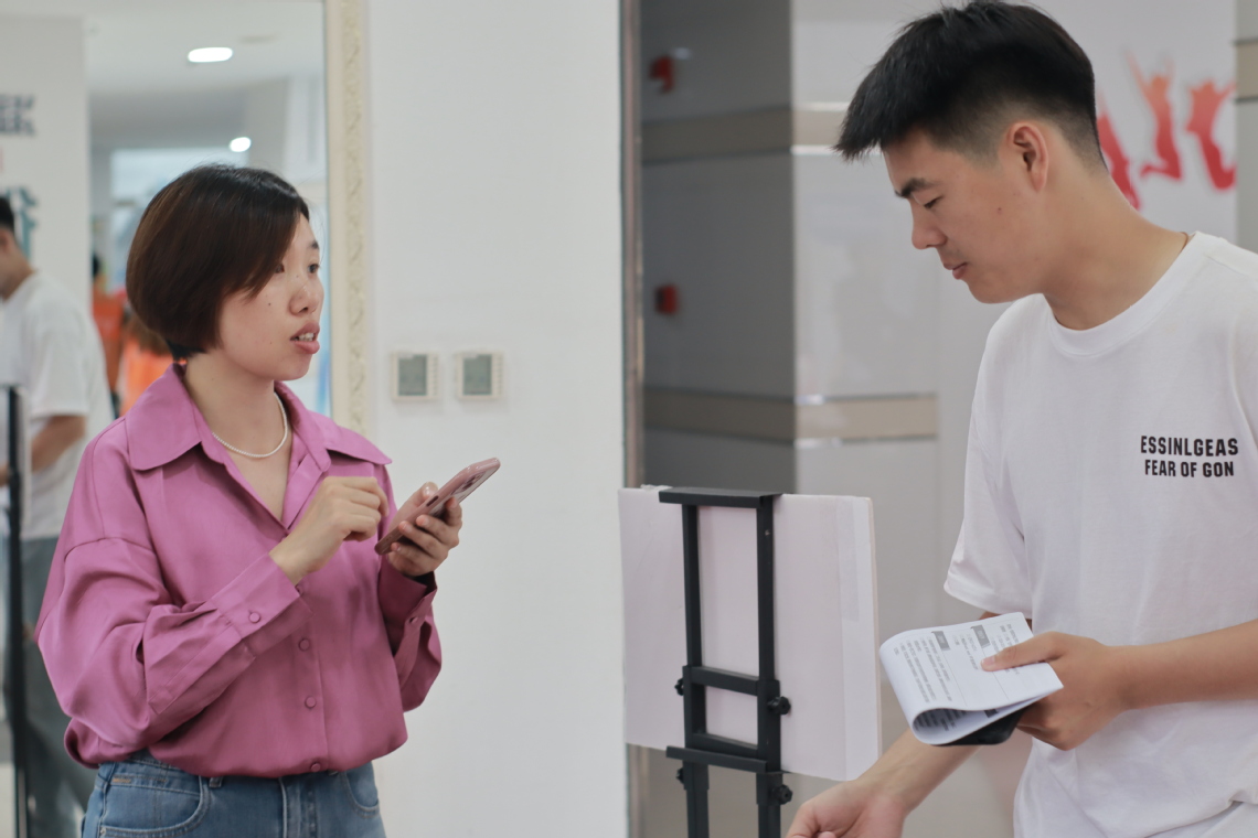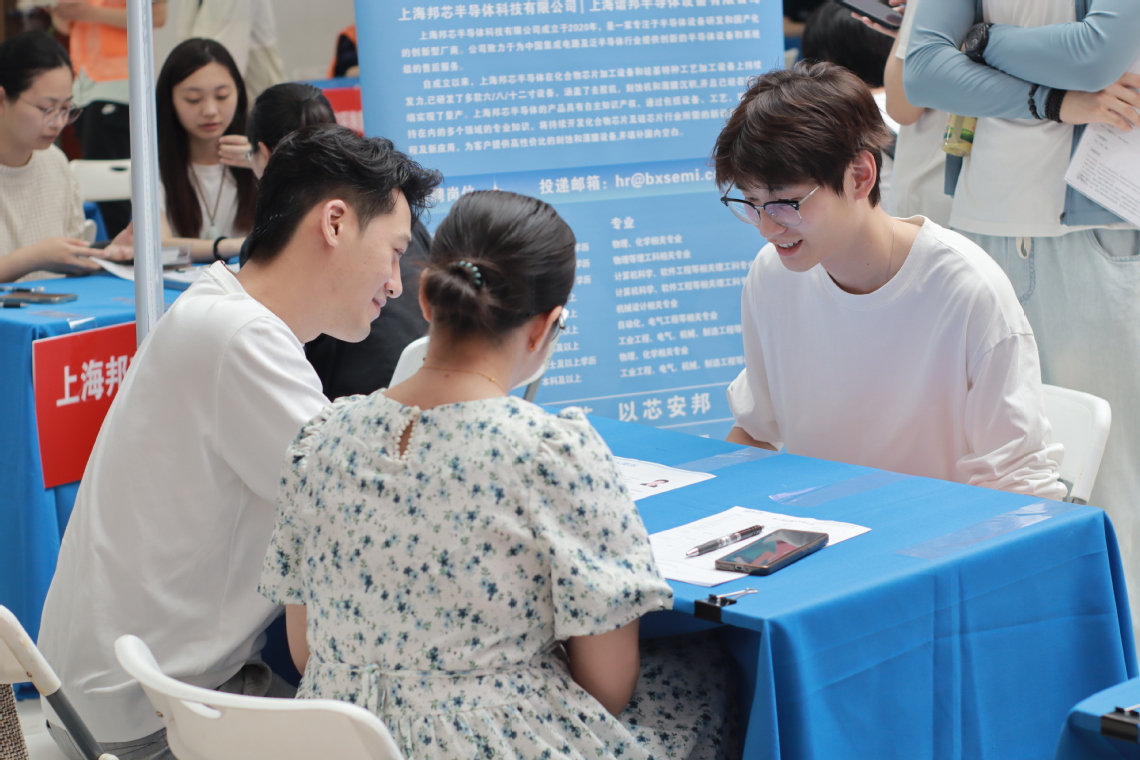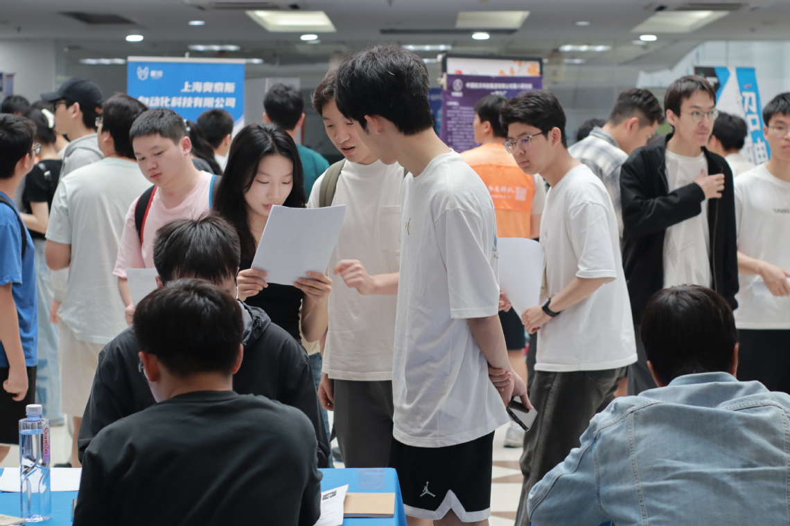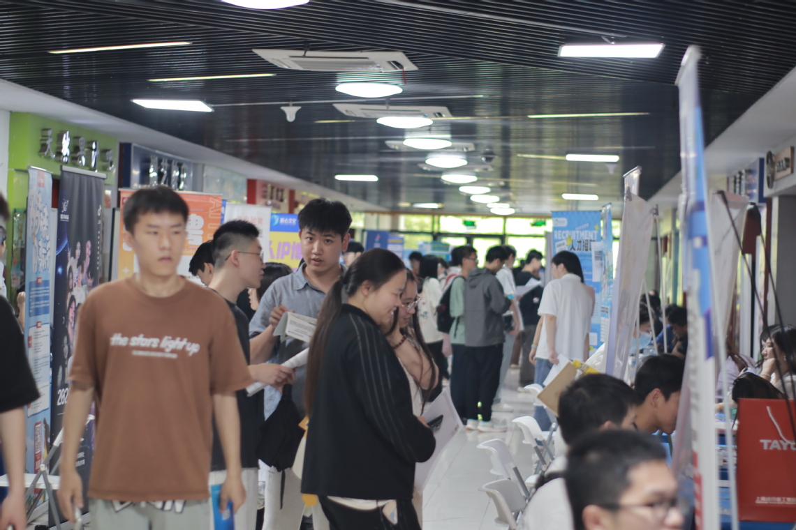 招聘会现场气氛热烈,毕业生满怀热情,积极与用人单位交流。他们精心准备了简历,充满期待又略带紧张地向心仪企业投递。航空航天类企业展区前人头攒动,不少学生对这一领域的前沿发展充满兴趣。中国科学院微小卫星创新研究院等单位的展位前挤满了投递简历的学生。