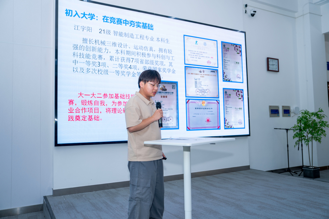 获奖学生代表、机械学院江宇阳同学分享了其研究历程与成长感悟。