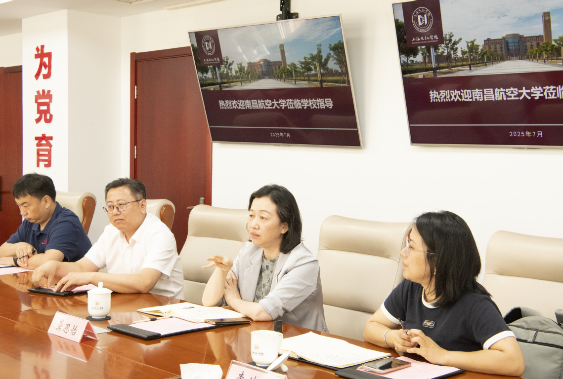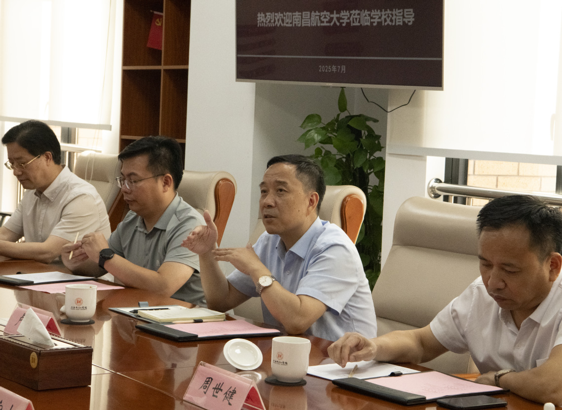 7月11日下午,南昌航空大学校长卢超、副校长周世健,张治中文化教育基金会主席朱一山等6人一行来校调研交流。院长龚思怡、副校长王宏志携相关部门负责人出席了交流活动。