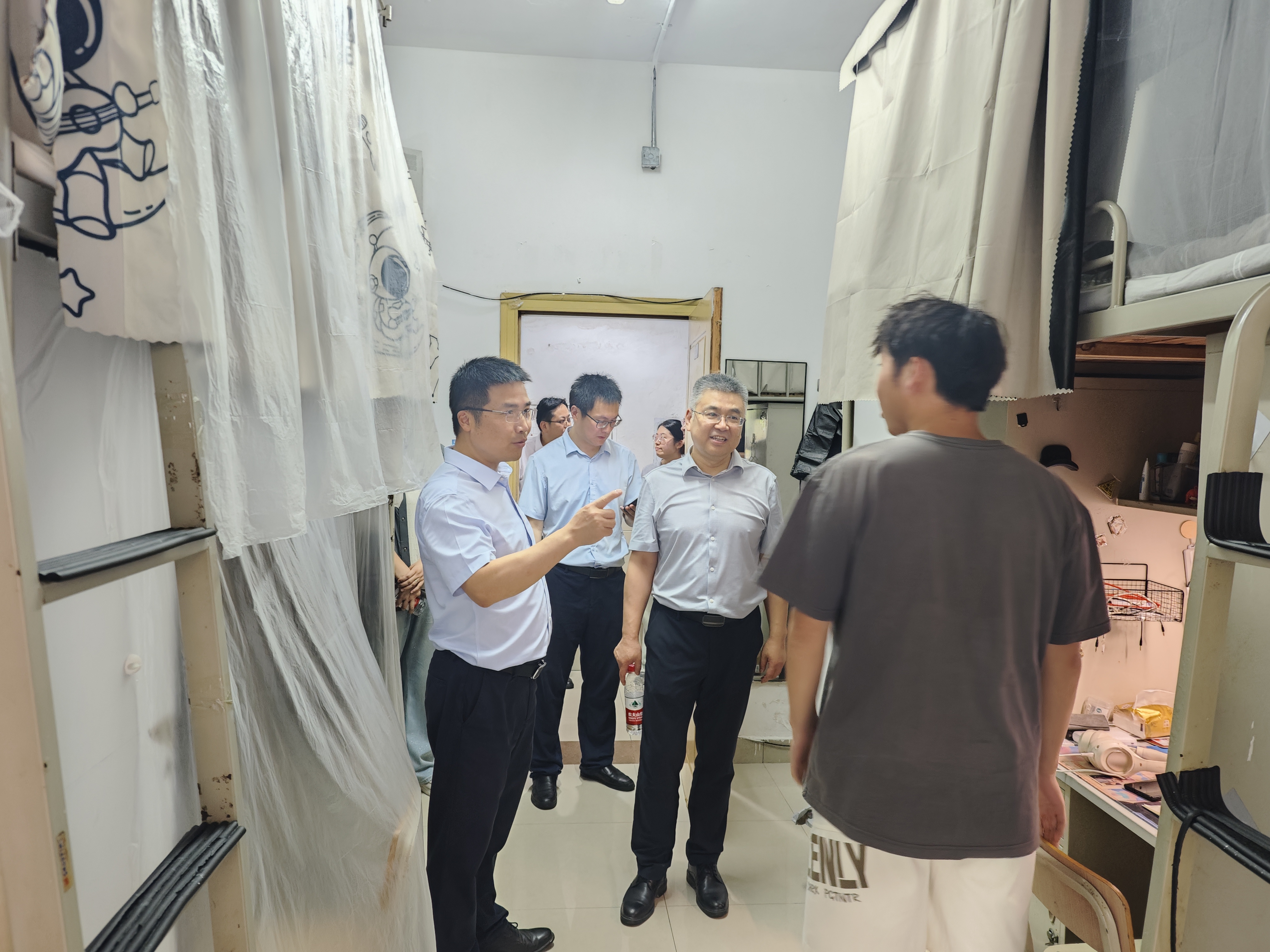 检查过程中,校领导听取了相关部门负责人对假期前安全工作落实情况的汇报,询问了各项安全管理措施的推进情况。结合现场检查实际,校领导强调安全是学校发展的底线,各部门要提高政治站位,坚持“党政同责、一岗双责”,以有效遏制各项事故为首要目标,筑牢校园安全屏障,重点抓好以下五方面工作:一是要强化安全责任落实,深入开展安全检查,有效防范各类风险隐患;二是要关注交通、食品、治安、消防等重点环节;三是要安排人员应急值守,全力做好防汛防台等防灾减灾工作,切实提升应急处置能力;四是要加强学生暑期安全教育,预防网络诈骗、溺水、交通事故等;五是要严格落实施工安全规范,保障在建工地安全,确保各建设项目按照既定目标高质量、高效率推进。