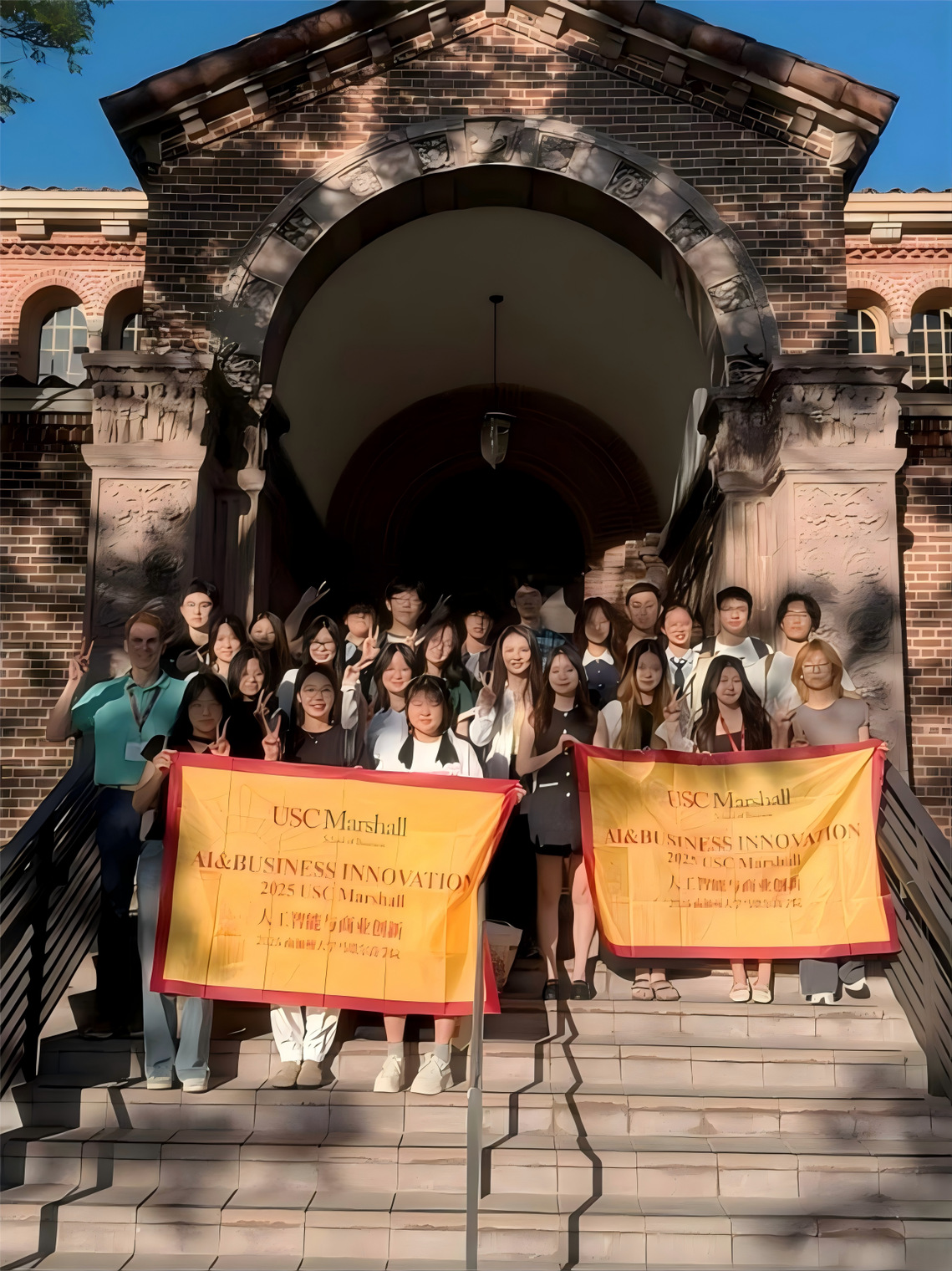 美国访学方面,本次暑期交流共计11名学生参加,分别前往南加州大学马歇尔商学院、德克萨斯大学奥斯汀分校和北爱荷华大学进行暑期交流。南加州大学“人工智能与商业创新”项目以AI驱动商业创新为核心,学生系统学习人工智能在多个商业领域的应用,并通过设计思维工作坊、实地访谈和路演竞赛等形式,全面提升商业方案设计与团队协作能力。德克萨斯大学奥斯汀分校项目通过口语交流、Python编程和学术写作等课程,强化学生的语言表达与编程基础,参观NASA航天中心等活动进一步激发学生对智能技术应用的兴趣。该项目有效提升了学生作为国际化工程师所必备的语言能力和工程实践能力,为其在工业机器人、集成电路等领域的专业发展提供硬实力支撑。