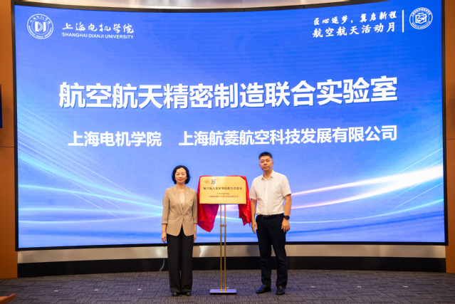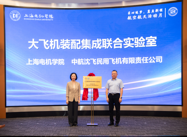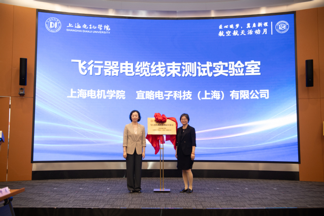 在实验室揭牌环节,龚思怡院长分别与中航沈飞民用飞机有限公司副总经理孟凡力、上海航菱航空科技发展有限公司董事长吕嗣孝、宜略电子科技(上海)有限公司执行董事庄海悦共同为“大飞机装配集成联合实验室”“航空航天精密制造联合实验室”“飞行器电缆线束测试实验室”揭牌,标志着学校在航空航天科研平台建设上迈出新步伐。