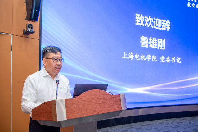 上海电机学院党委书记鲁雄刚致欢迎辞。他指出,学校作为产教融合特色鲜明的应用型高校,始终以服务国家战略和区域经济发展为使命,近年来在航空航天学科建设、人才培养、产教融合等领域成果丰硕。从2022年成立航空产业学院,到2023年成立航空研究院,再到2024年航空学院正式揭牌,是学校紧紧围绕产业需求,在政府、企业的大力支持下,学校一步步夯实航空航天特色根基。鲁雄刚表示,此次航空航天活动月的启动,是学校深化产教融合、打造航空航天人才培养摇篮的新起点,期待与各方携手,为我国航空航天事业发展贡献“电机力量”。