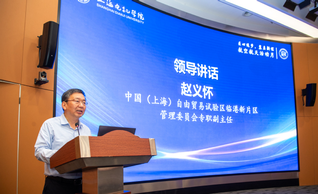 临港新片区党工委委员、管委会专职副主任赵义怀在致辞中高度肯定了上海电机学院在航空航天领域的前瞻性布局。他强调,临港新片区正全力打造世界级航空产业集群,学校聚焦航空制造业的发展方向与临港产业需求高度契合。管委会将一如既往地持续支持学校建设,推动校地、校企深度合作,抢抓中国大飞机产业发展机遇,构建高质量大飞机产业生态体系。