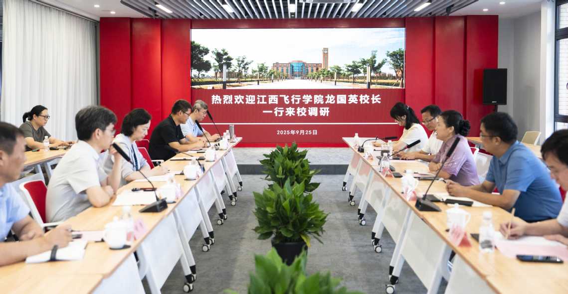 9月25日上午,江西飞行学院龙国英校长带队一行5人来校调研交流。院长龚思怡、副院长杨俊杰携相关部门负责人出席交流活动。