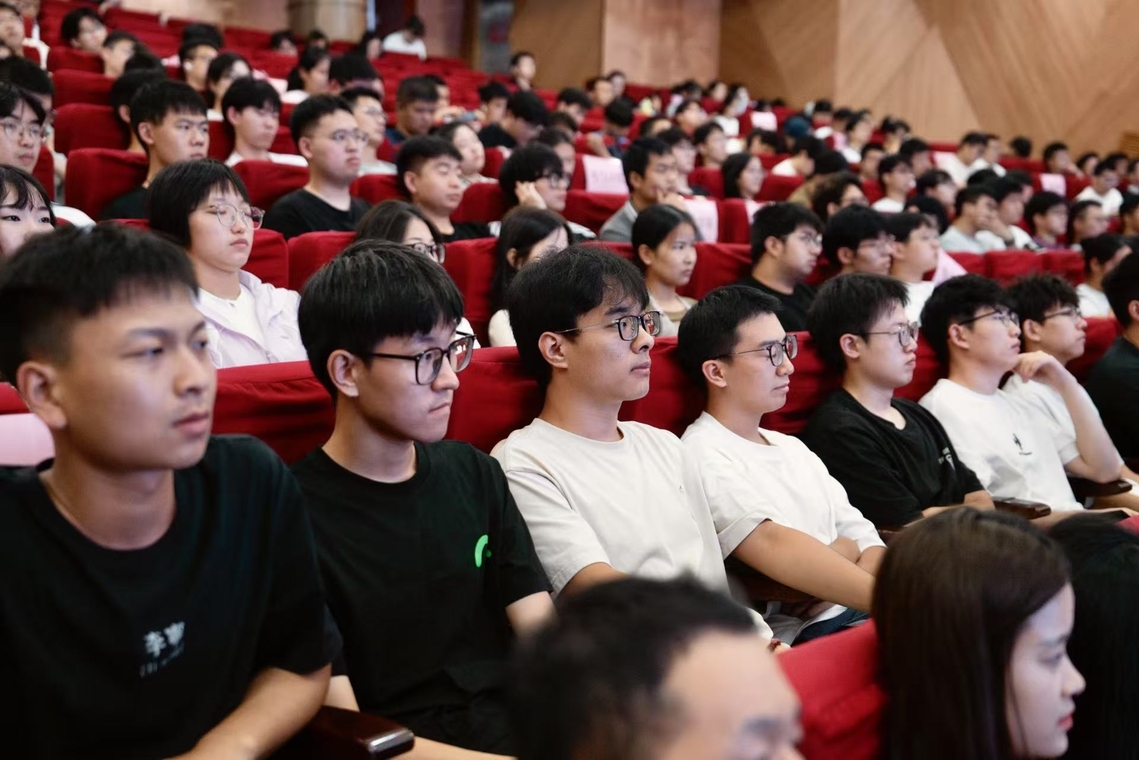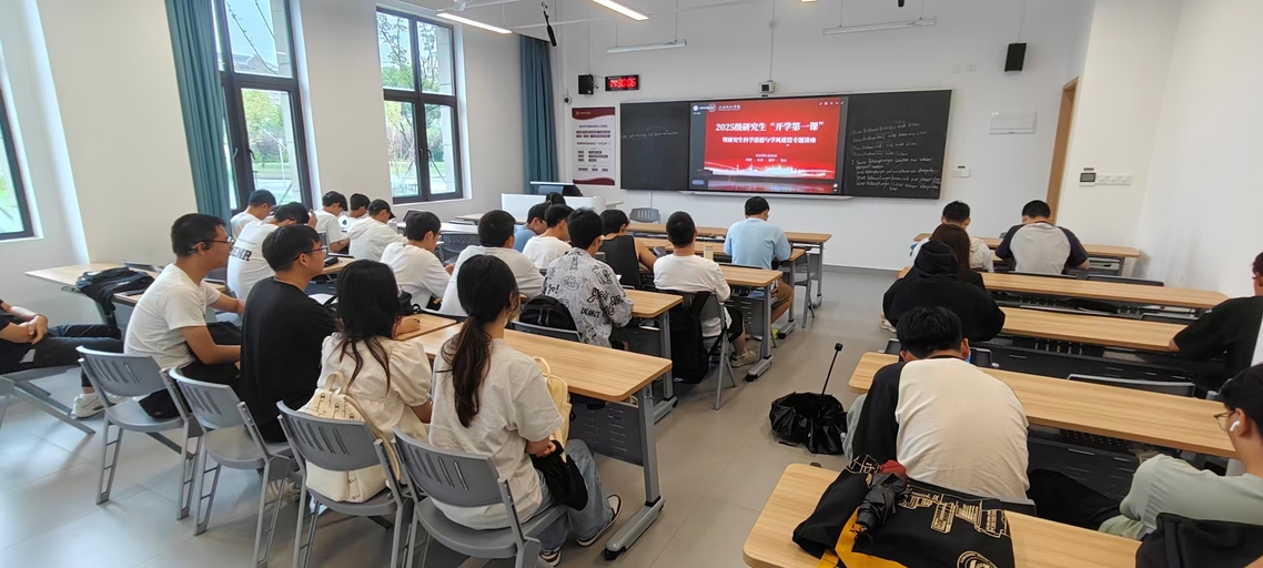 讲座伊始,现场首次展示了由鲁雄刚书记形象生成的AI数字人致欢迎词,以科技感十足的方式向2025级全体研究生表示欢迎,鼓励研究生以“创新”破局,以“融合”致远,以“实干”立身,以青春之我、奋斗之我、智慧之我,书写属于电机人的时代答卷!展现了学校在数字化转型与教育教学融合创新上的探索,迅速拉近了师生距离,营造出开放包容的育人氛围。
