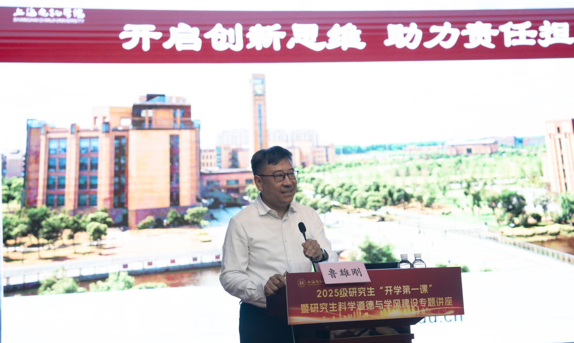 学校党委书记鲁雄刚以“开启创新思维 助力责任担当”为主题,围绕“读懂我们的使命担当”“理解我们的培养理念”“开启我们的创新思维”三大板块展开讲授。他从国家战略与上海“五个中心”建设切入,系统阐释了新时代的研究生应如何立足产业发展、把握时代机遇,在服务制造强国、低空经济、大飞机等领域中找准个人定位,强化科技自立自强的责任意识。