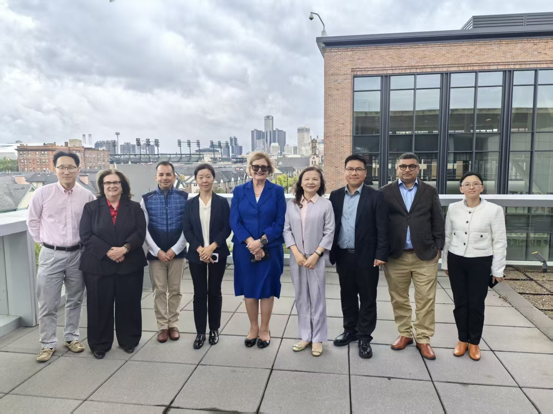 9月23日,代表团访问韦恩州立大学,与Mike Ilitch 商学院院长Virginia Franke Kleist等多位相关负责人及教授会谈。双方深入探讨了“3+1+1”本硕联读、短期学分互换及MBA项目合作。
