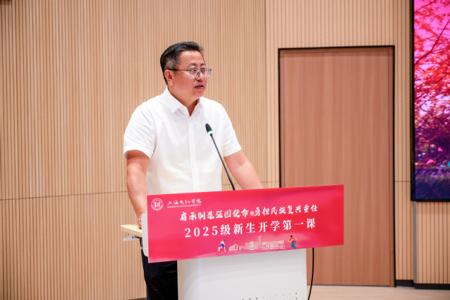 2025年10月10日,上海电机学院以一场别开生面的“三地联动、多师共讲”形式,为全体2025级本专科新生带来了一场内容丰富、意义深远的“开学第一课”。课程由院长龚思怡、副书记朱洪春、副院长王宏志联合主讲,分别在体育馆、图书馆报告厅和小剧场三个会场同步进行,通过现代信息技术实现互联互通,营造出沉浸式、多维互动的课堂氛围。