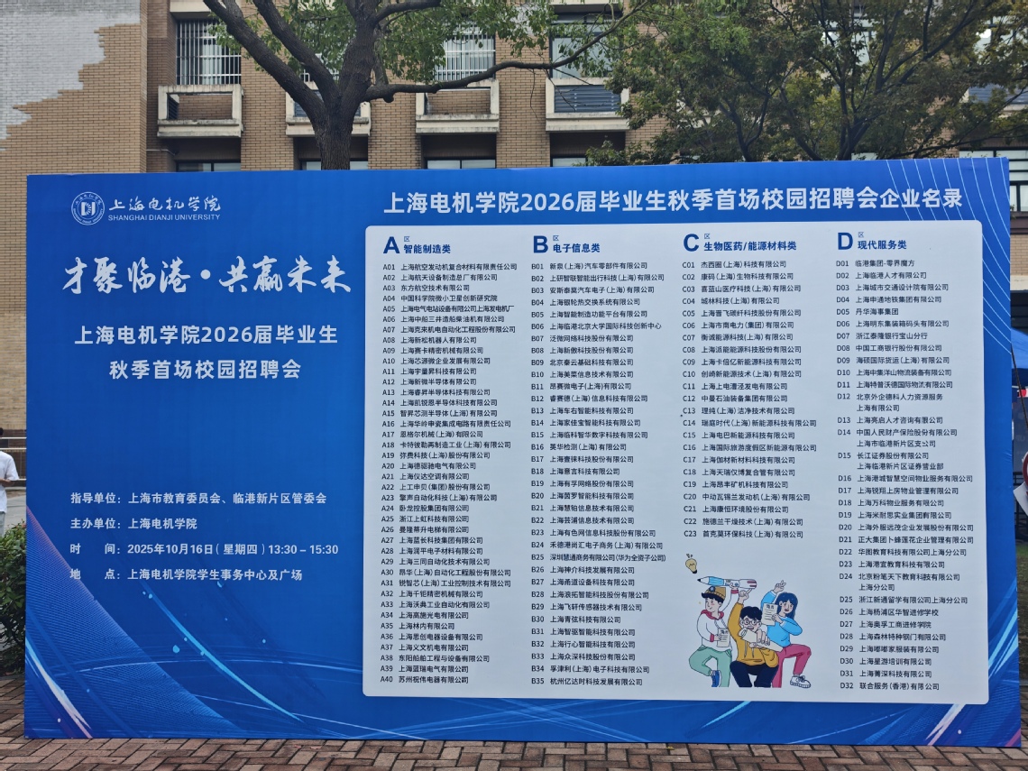 本次招聘会在上海临港人才有限公司等单位的大力支持下顺利举办,是学校深化产教融合、服务区域发展的重要举措。临港新片区作为上海经济发展的重要增长极,正大力发展高端制造、集成电路、人工智能、新能源等前沿产业,为毕业生提供了广阔的发展空间。学校将持续推进校企地协同育人,拓展就业渠道,优化就业服务,为毕业生实现更充分更高质量就业保驾护航。(供稿:学生处就业指导中心;摄影:董晨浩、沙奥淋、王雯艳)
