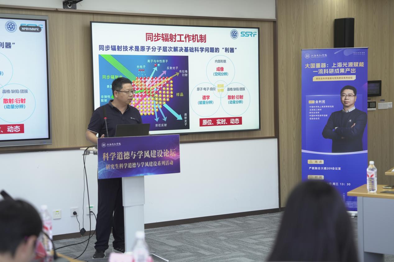 金利民教授以“大国重器:上海光源赋能一流科研成果产出”为主题,介绍了同步辐射光源的基本原理、上海光源的建设历程、开放运行情况、用户成果情况等。并重点介绍了上海光源在坚持“四个面向”、赋能一流科研成果产出、助力建设科技强国征程中所做的贡献。