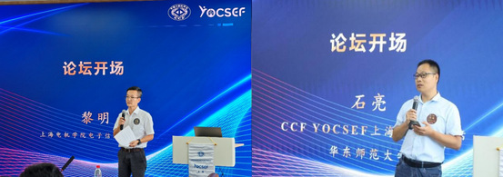 CCF YOCSEF上海通讯委员、电子信息学院副院长陈志敏和CCF YOCSEF上海副主席徐冰茹作为执行主席,详细介绍了滴水湖系列论坛举办历程和本次论坛的活动流程。上海电机学院电子信息学院院长黎明致辞,并向与会嘉宾表示热烈欢迎,他介绍了电子信息学院的专业发展和现状,期待通过此次论坛为破解集成电路人才培养和产业需求之间结构性矛盾提供宝贵思路、可行性路径和合作契机。YOCSEF上海主席、华东师范大学石亮作为开场嘉宾阐释了CCF YOCSEF的文化理念与活动宗旨,强调论坛旨在为青年学者与产业人才搭建高质量交流平台,推动集成电路领域人才培养的系统化与专业化。
