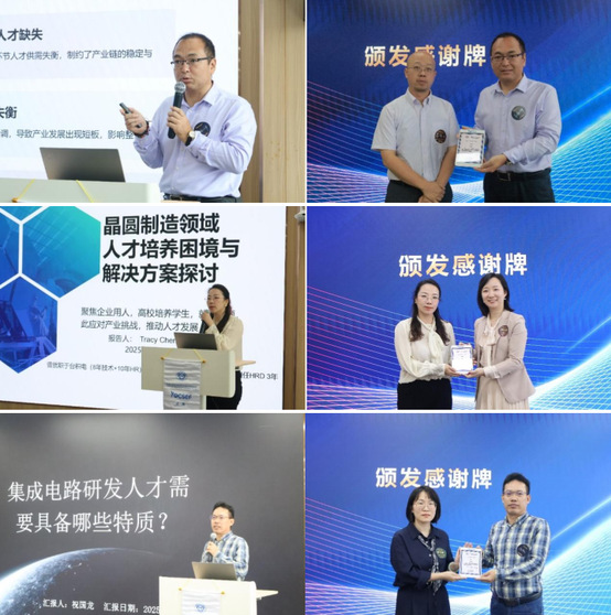 在引导发言环节,三位来自产业与行业的专家分享了前沿观点与实践经验。临港产业大学集成电路二院院长王迎帅以《集成电路产业应用型人才现状与发展》为题,指出当前人才短缺、技术能力不足、校企合作机制不畅等现实问题,并提出构建“产教融合共同体”的倡议,呼吁从产业链整体视角推动生态协同。芯锐培英联合创始人、院长陈艳在《晶圆制造领域产业研究及人才培养》报告中,从企业与学生双重视角出发,剖析半导体行业面临的挑战,倡导通过更开放、规模化、专业化的培养模式,系统提升人才实战能力。英伟达半导体科技(上海)有限公司祝国龙则强调,集成电路研发人才需具备广泛的知识面、严谨的质量意识与卓越的调试思维,提出应通过课程改革、竞赛实践与企业实习相结合的方式,夯实一线工程师与研发人才的培养基础。