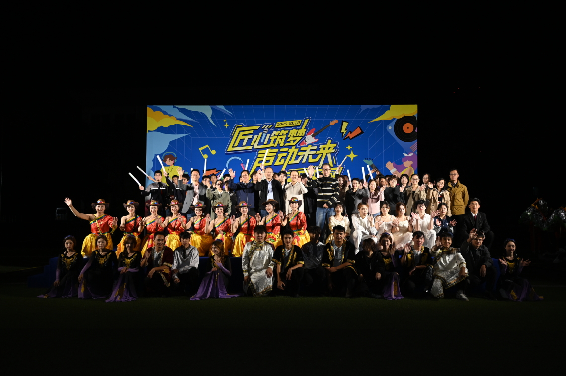 音乐节尾声,全场师生共同唱响《明天会更好》,激昂旋律与真挚歌声交织,凝聚起携手前行、共创未来的信念与力量。活动中还穿插了有奖问答环节,进一步拉近舞台与观众的距离。经现场投票,最终评选出“金声匠心奖”“玲珑音匠奖”“绕梁金音奖”与“未来新声奖”等多个奖项。