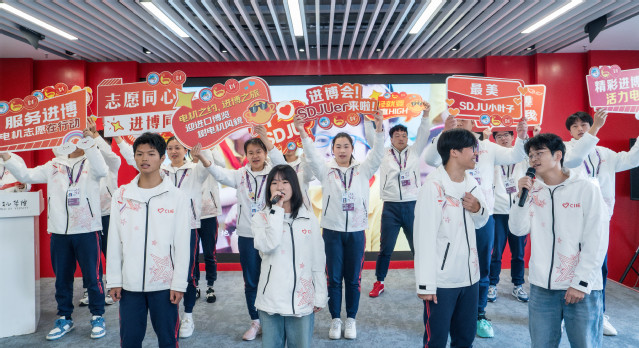 全体志愿者共同唱响《年轻的力量》,激昂的歌声点燃了出征的热情,79名“小叶子”带着学校的期许与嘱托,以专业素养与青春热情,为进博会越办越好贡献电机力量,在国际舞台上展现电机青年的责任与担当。(供稿:团委)