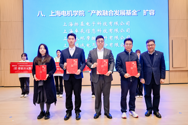 上海扬基电子科技有限公司、上海卓辰信息科技有限公司、上海永环摩擦材料有限公司、上海诺诚电气股份有限公司分别向上海电机学院产教融合发展基金捐赠,为学校深度开展产教融合工作提供有力支持。
