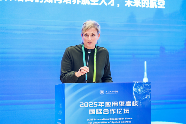 法国图卢兹第二大学技术学院院长卡琳·利沃蒂教授作了题为《航空人才培养》的主旨报告,分享了法国在航空人才培养方面的先进经验,特别介绍了AI技术在航空模拟训练中的创新应用。