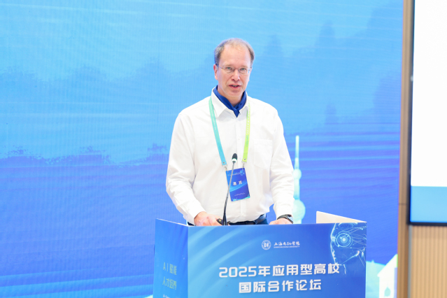 德国维尔道大学前副校长约尔格·雷夫·斯特凡教授作了题为《AI时代的国际合作》的主旨报告,分享了德国高校在人工智能教育领域的先进经验,强调了建立跨国合作信任机制的重要性。