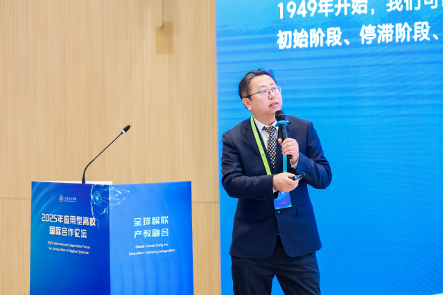 中国高等教育学会教育评估分会副理事长、中国教育国际交流协会应用型高校国际交流分会理事长蔡敬民教授作了题为《中国应用型高等教育的改革创新与实践》的主旨报告,系统梳理了中国应用型高等教育从借鉴德国模式到本土化创新的历程,提出了未来发展的战略思考。